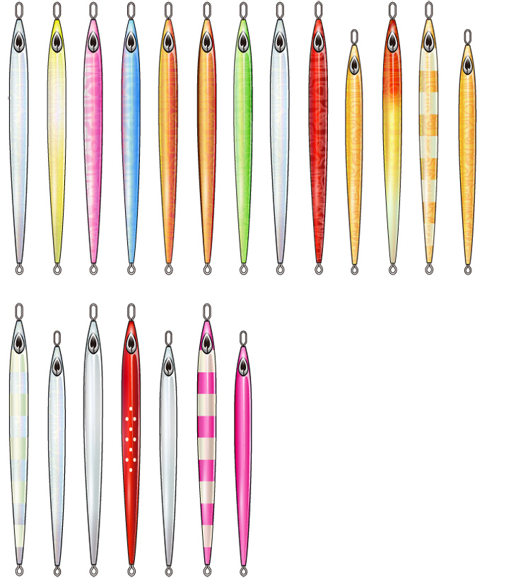 | ■シルバー ■カタクチ ■ピンク ■ブルーピンク ■レッドゴールド ■レッドグロー ■半面グローP ■半面グローRG ■ゼブラグロー ■半面レッドゴールド ■レッドヘッドグロー ■エッジゼブラグローゴールド ■アルミシルバー ■半面レッドスポッドグロー ■フルピンクゼブラグロー |