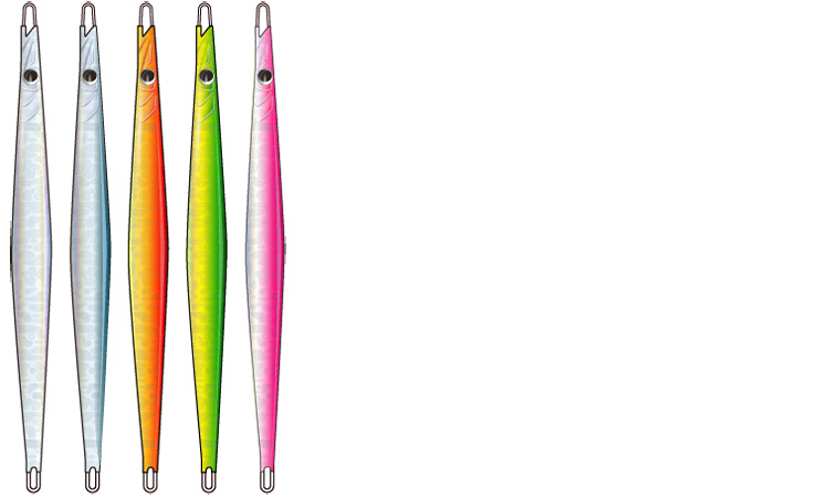 | – 無欠のスローアクション – スローリフトでは微波動ウォブリングで無防備なベイトフィッシュを演出。高次元バランス設計の細身ボディはフリーフォールでフラッシングロールしながら斜め方向への直線軌道を描きスライドフォール。このアクションにフィッシュイーター達は喰えるベイトと認識し、究極の喰わせへと誘います。この一連のメソッドを短い距離で刻めば無欠のスローピッチへと変貌。ロングフォールとスローピッチの使い分けをジガーの意思で高次元に演出できるプロ仕様モデルです。 |