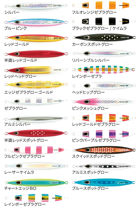 上げフォールともに全てが悩殺アクション。 スローピッチ系のジグにしては少々細目のボディー形状は飛型を安定させリフトを軽くしジグをスライドへと導きます。このジグに求めたアクションは静と動の両立。上げはなるべく動きを抑えフィッシュイーター達に警戒心を与えず縦方向へと長く追わせ、ひとたびフォール方向への入力が入れば、今までの静とは真逆にエッジの効いたリア部分で乱流を発生させ斜め方向へと暴れながらフォールしバイトへと持ち込みます。言わばフォール方向へのトゥイッチングみたいなものでベイトフィッシュが捕食魚に気付き逃げ惑う様を演出します。 ロングフォール系のメソッドにも適したジグですが、普通にスライド~バックスライドの連続的なワンピッチのスローはもちろん、その操作性の良さからゆっくりとした上げを刻む時でも細いフロント部分の形状を活かしふらつきの少ない縦方向への誘いも得意としていて、その時々のパターンをアングラーが意のままに演出できるDualstar。貴方自身のテクニックを駆使してアプローチしてみてください。